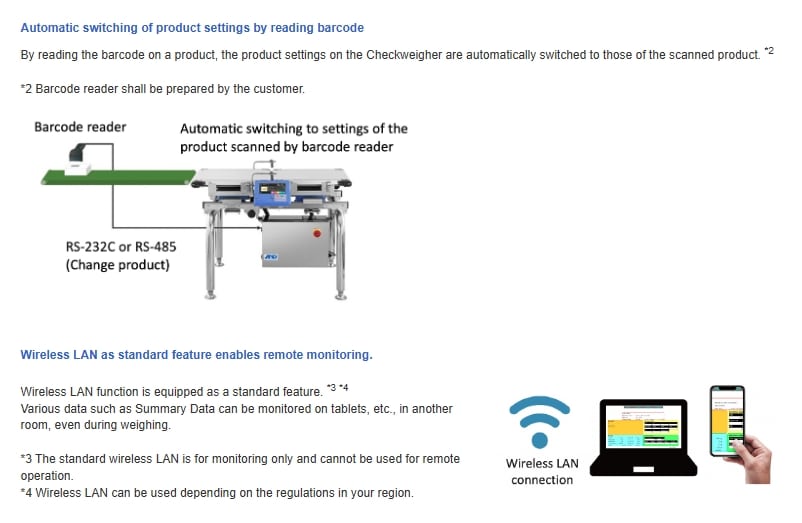 Checkweigher รุ่น AD-4961A เป็นเครื่องชั่งตรวจสอบน้ำหนักที่ออกแบบมาเพื่อความแม่นยำและความเร็วในสายการผลิต เหมาะกับโรงงานที่ต้องการควบคุมคุณภาพสินค้าอย่างเข้มงวด โดยเฉพาะอาหารและบรรจุภัณฑ์ จุดเด่นคือความแม่นยำสูงแม้ในความเร็วการผลิตที่มากขึ้น