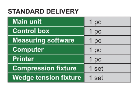 - อุปกรณ์เสริม: ชุดจับแรงดึง, แผ่นทดสอบแรงอัด, คอมพิวเตอร์, เครื่องพิมพ์