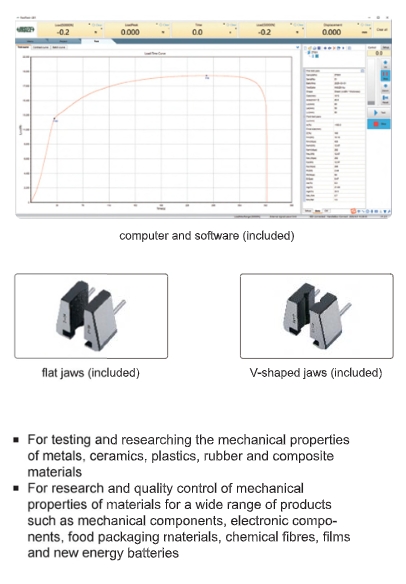 - การใช้งานอเนกประสงค์: ทดสอบได้ทั้งแรงดึง, อัด, ดัด, เฉือน, Peel/Tear